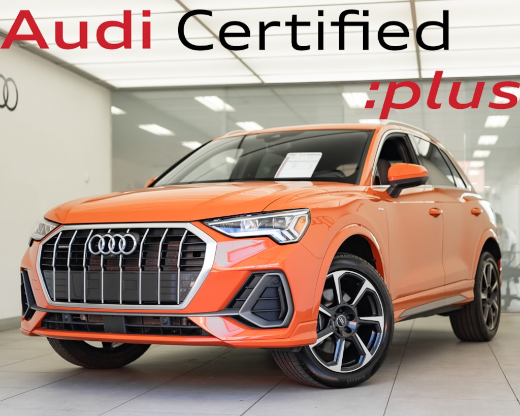 This 2024 Audi Q3 comes to us with only 28,670 km. It blends premium finishes, advanced tech, and sharp design in one compact luxury SUV. Perfectly suited for city life or weekend escapes. It's finished in Pulse Orange & Rotor Grey Leather interior. Notable options include 19” Rotor wheels, Heated front seats, Heated Steering wheel, Panoramic sunroof, Sonos Premium Audio System, Apple CarPlay & Android Auto