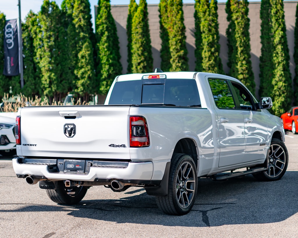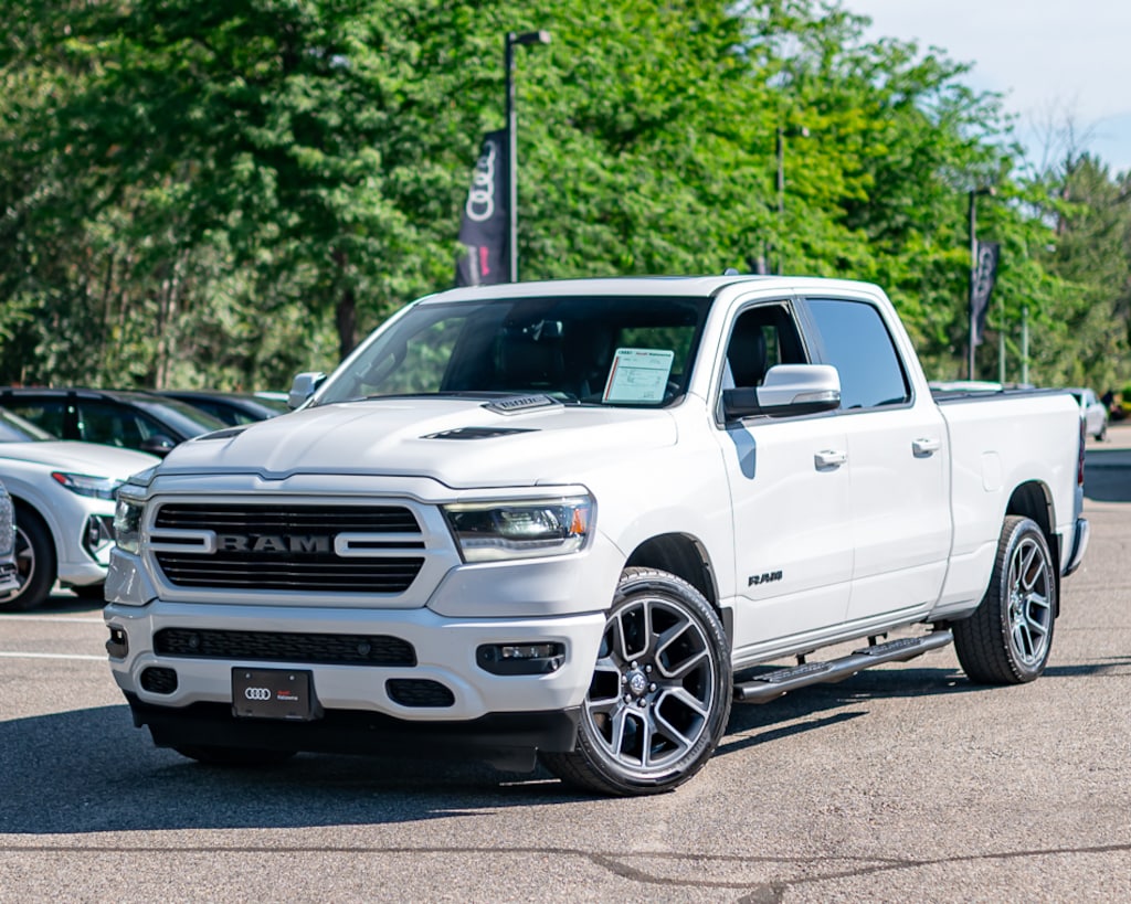 This 2019 Dodge Ram 1500 comes to us with only 119,829 km. Powered by the acclaimed 5.7 L HEMI V8 and a smooth 8?speed automatic, it blends dependable performance with upscale features perfect for work or weekend adventures. Finished in Bright White & Black leather seats. Notable options include 22” Alloy wheels, Heated front seats, heated steering wheel, auto-dimming mirror, keyless entry, Bluetooth connectivity & phone interface
